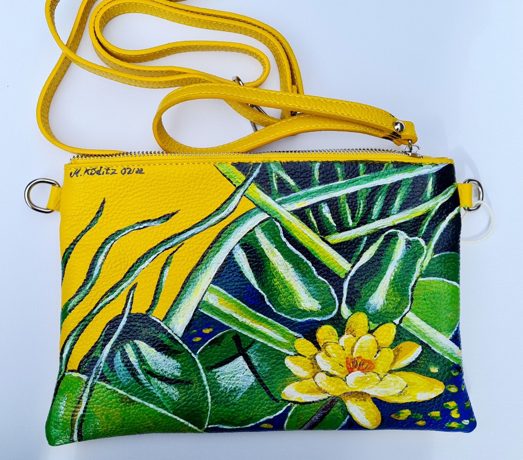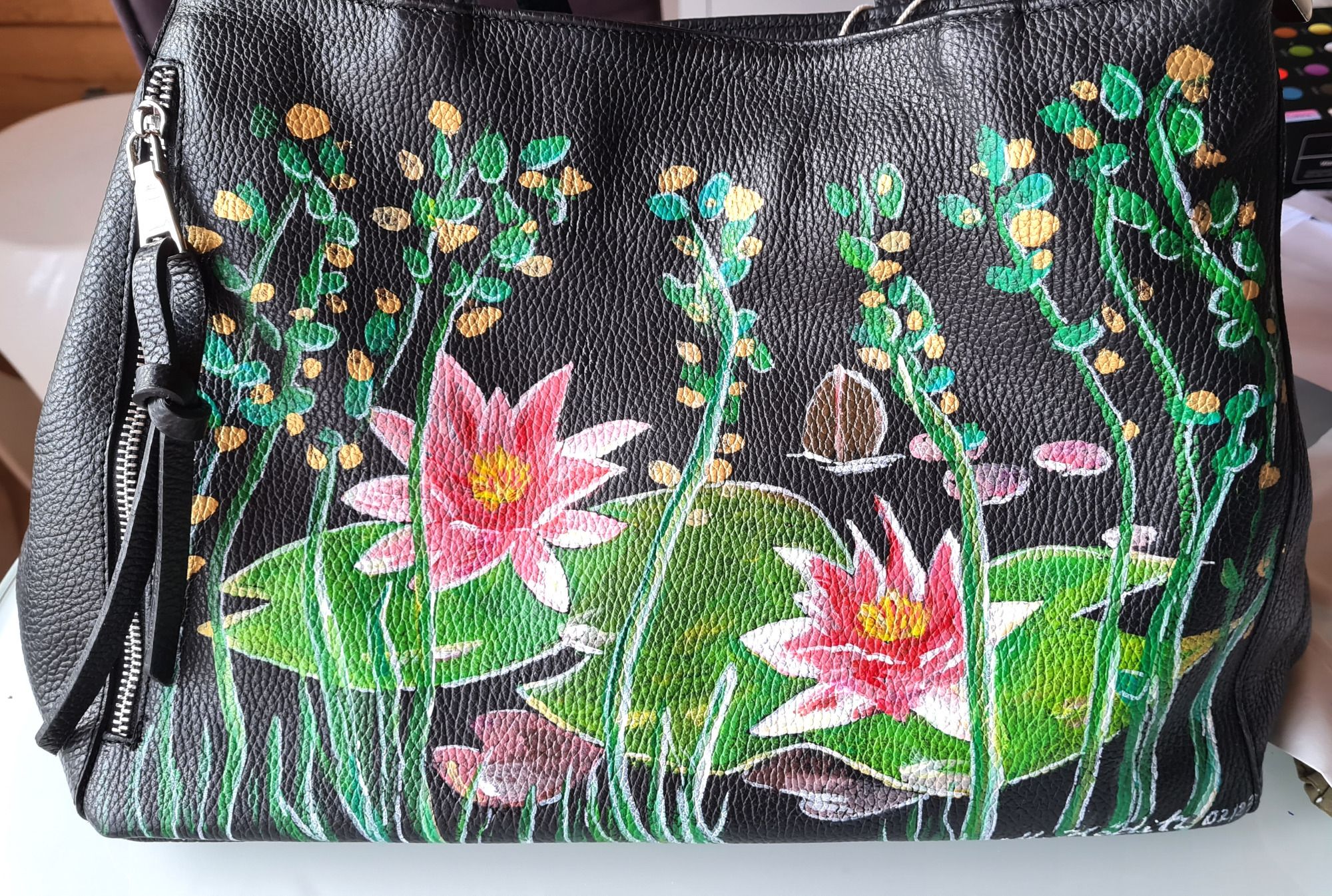 Jede Ledertasche gibt es nur einmal. Die Motive der handbemalten Echtledertaschen orientieren sich zum Großteil an den von Frau Köditz designten Öl- und Acrylbildern. Passend zu den Ledertaschen gibt es entsprechende Chiffonschals.